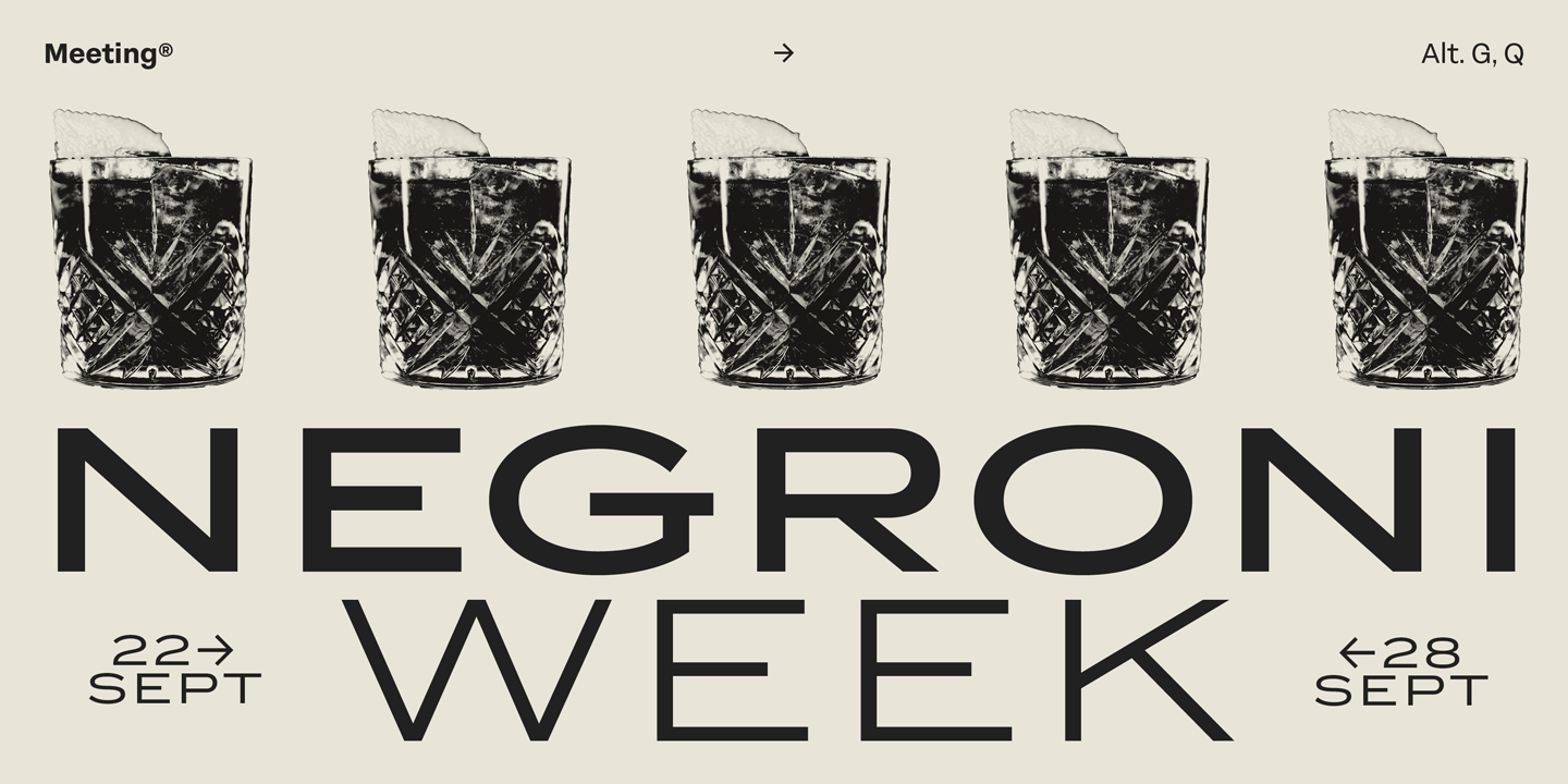 Conceived for projects with character—from cocktail or coffee labels to festival posters, menus, music, or handcrafted products—Meeting has the poise of a serious typeface with the charm of a good Negroni: balanced, bold, and with just the right touch of freshness.